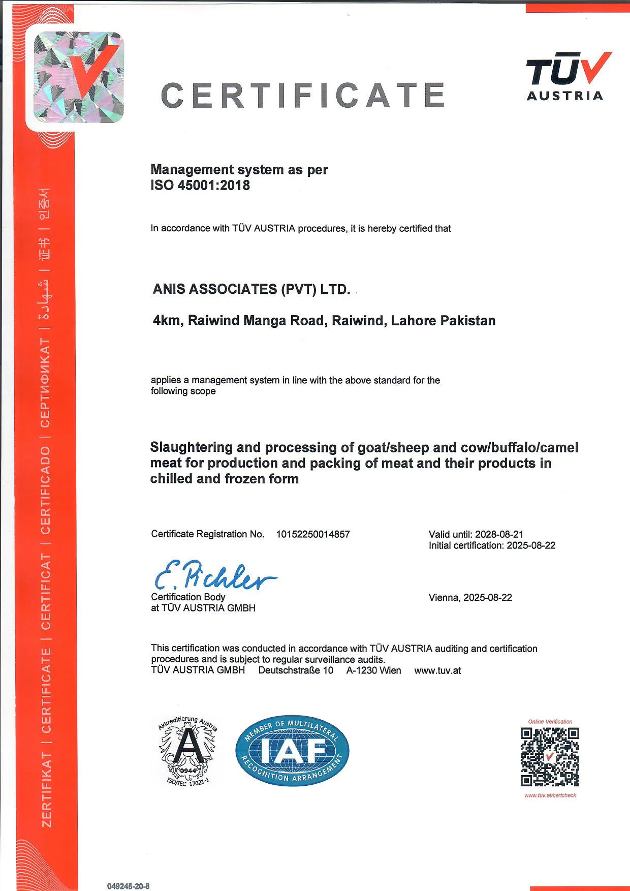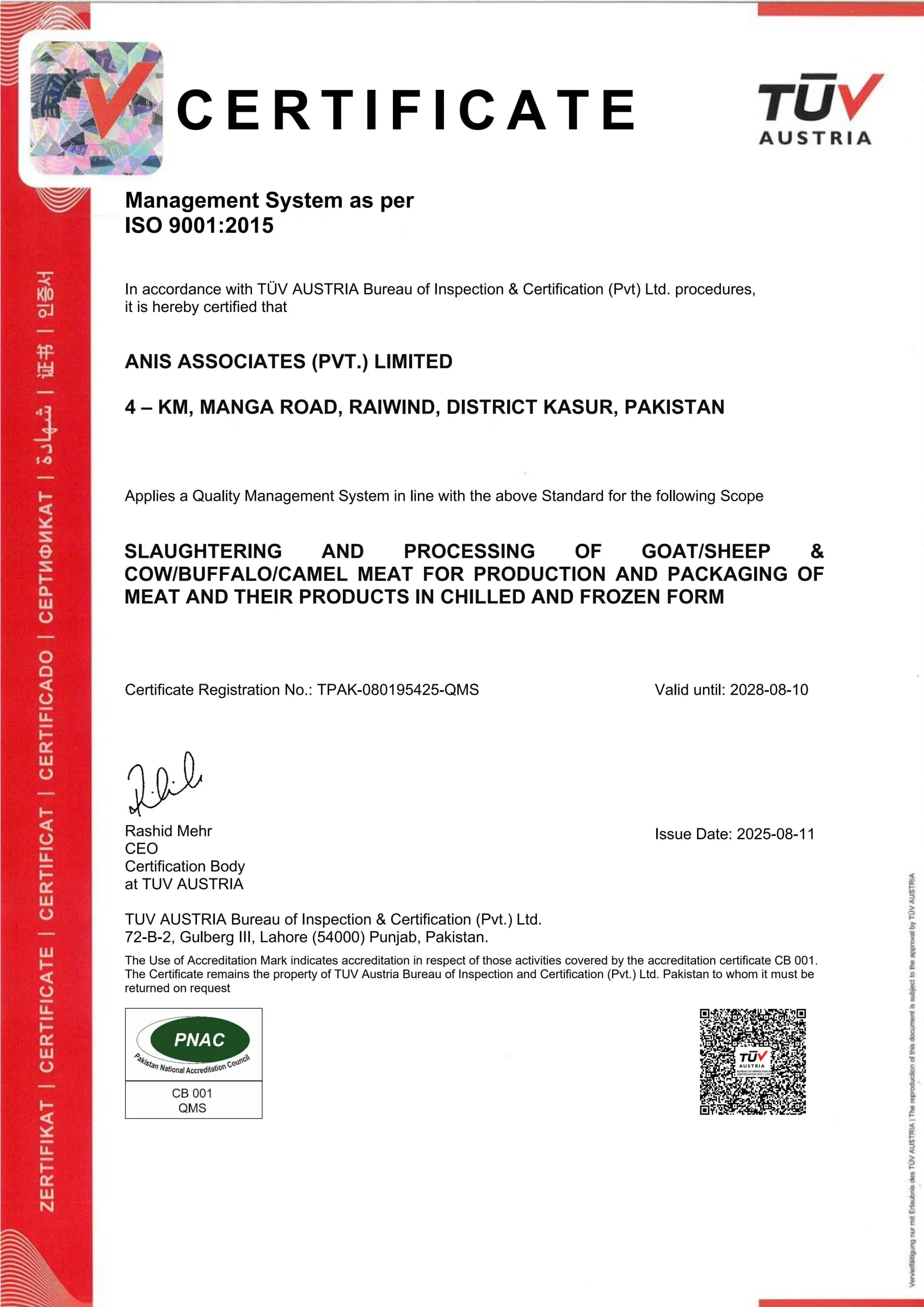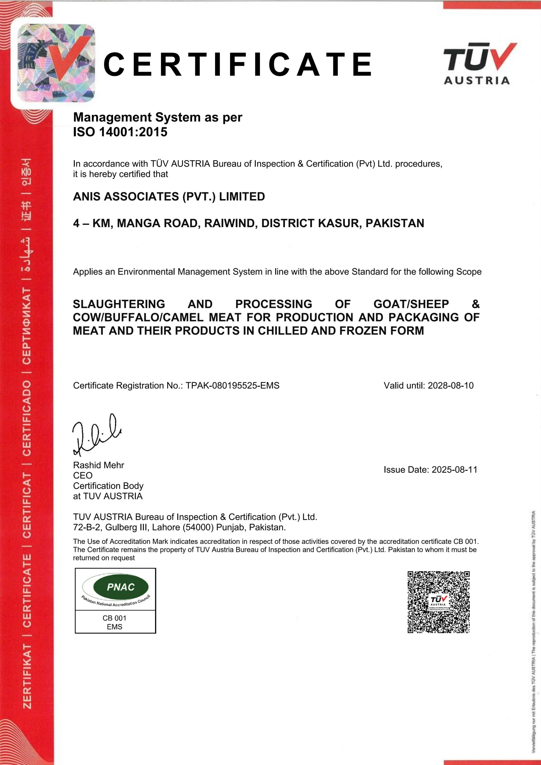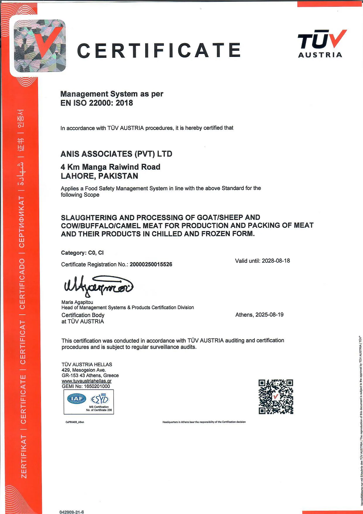 These certifications reflect our continuous drive to achieve operational excellence while upholding the values of integrity, sustainability, and customer satisfaction. Whether you are a local customer or an international partner, you can trust that Anis Associates delivers uncompromised quality — certified at every level.