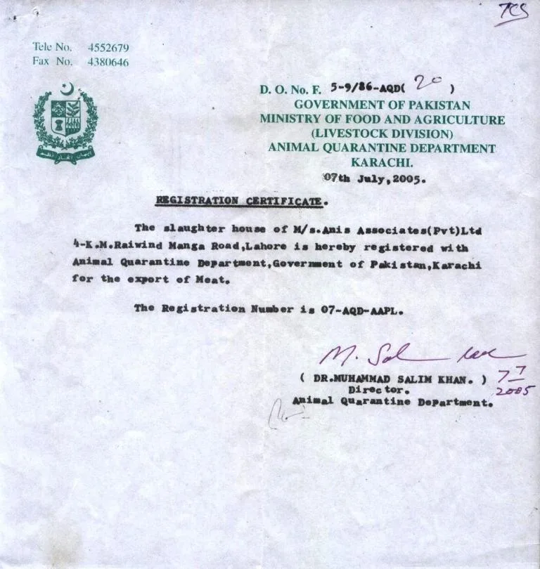 - Animal Quarantine Department, Government of Pakistan