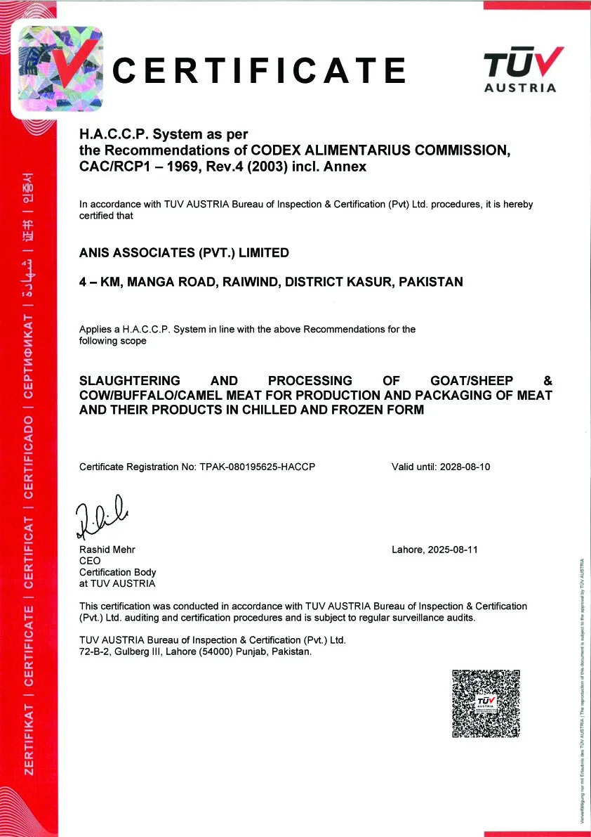 Quality, safety, and trust are the foundations of everything we do. Since our establishment in 2002, we have remained committed to maintaining the highest international standards in Halal meat production, food safety, hygiene, environmental responsibility, and occupational health.