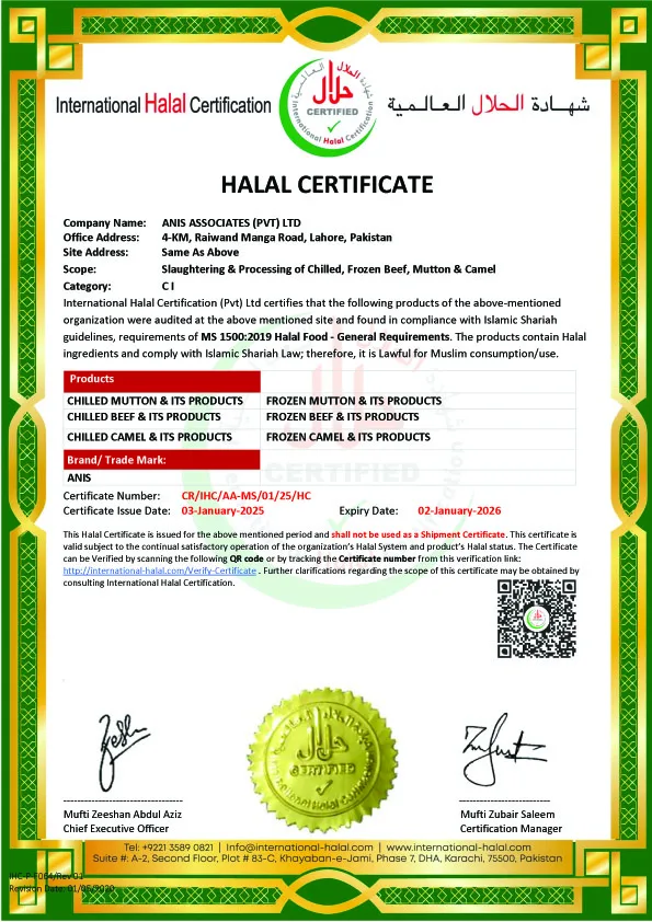 We take pride in being recognized and certified by numerous national and international regulatory bodies, which reflect our dedication to compliance, transparency, and continual improvement. These certifications not only validate our processes but also ensure our customers across the globe receive safe, hygienic, and 100% Halal meat products — every time.